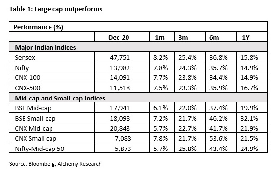 We see markets remaining strong through CY21, based on global liquidity and a recovering domestic economy. The x-factor is likely to come from a robust global commodities rally, which creates some peculiar conditions for the Indian economy and the markets. Our focus remains on being fully invested, well-diversified and picking quality stocks for our portfolio.